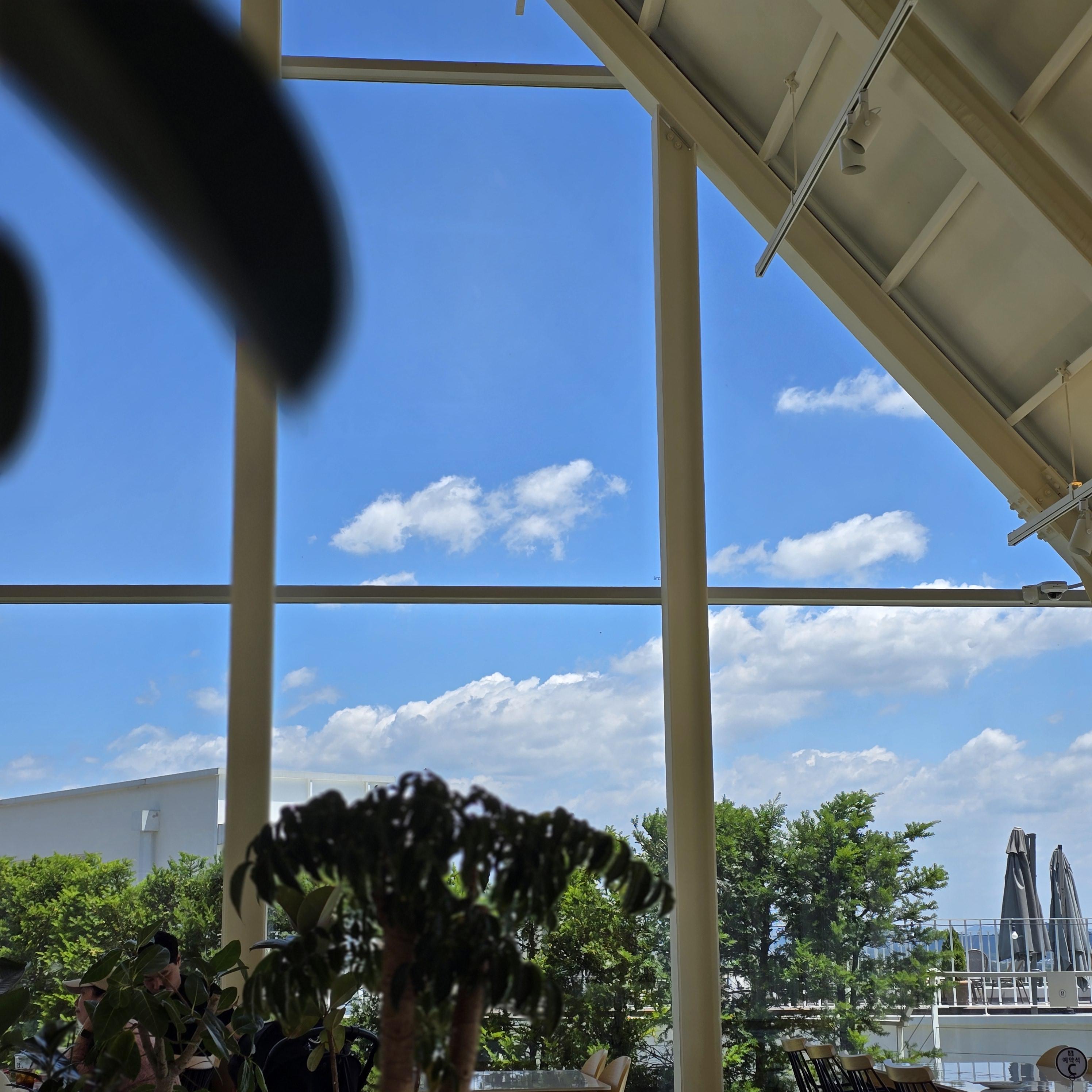 큰 통유리창 덕분에 자연광이 잘 들어오고 그래서 밝고 쾌적한 분위기가 느껴집니다.