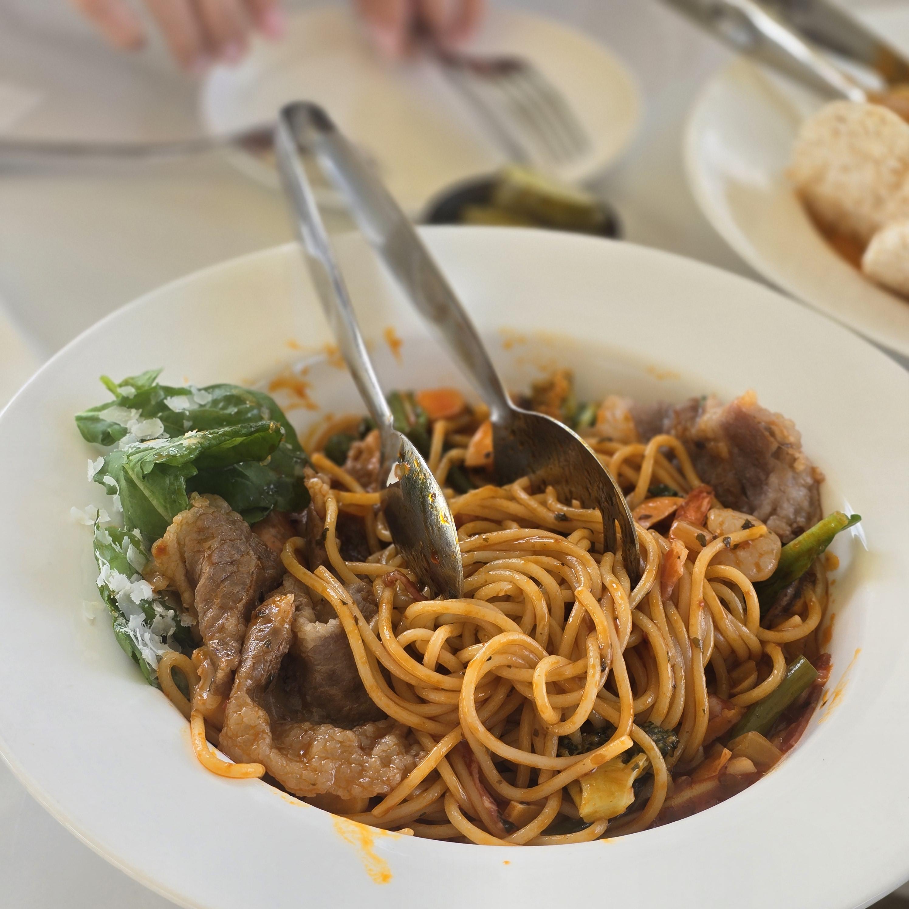 새우와 치킨의 조화도 아주 잘 어울렸어요. 특히 파스타 위에 남은 소스 발라 먹기 딱 좋은 뻥튀기도 같이 제공되어 좋았습니다.