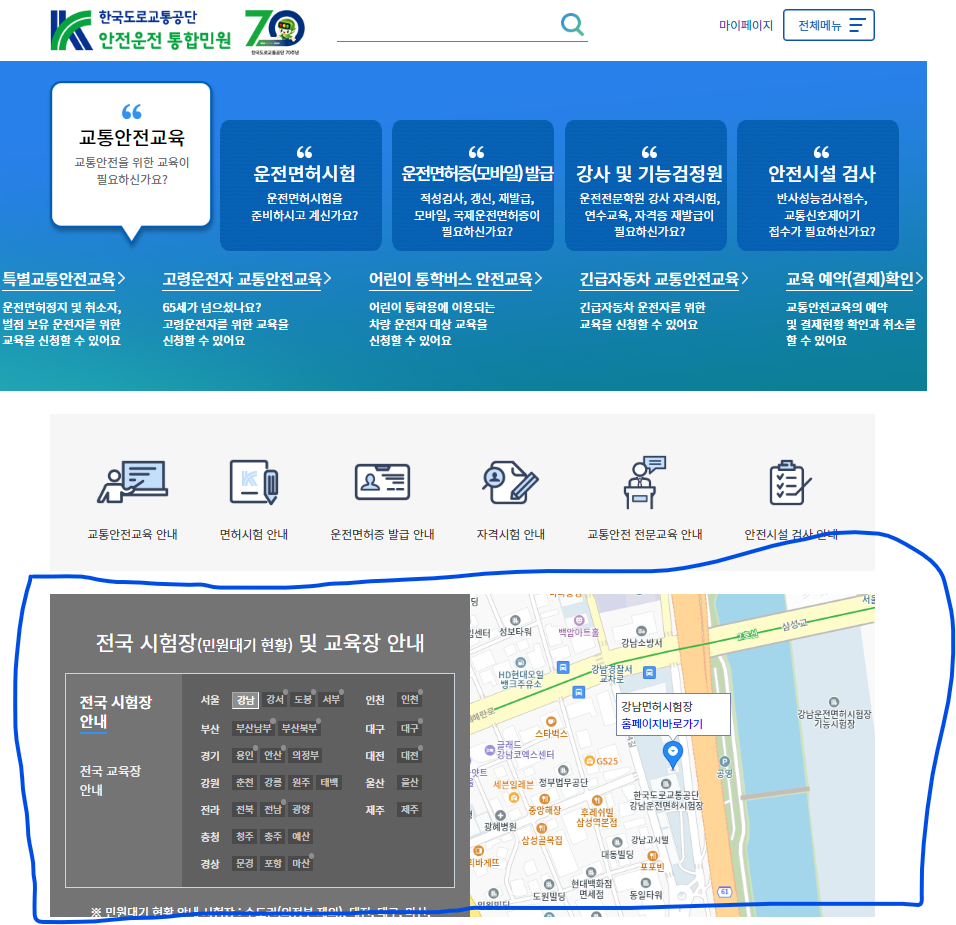 (※ 강남경찰서는 면허갱신 업무를 하지 않으므로 인접한 강남면허시험장을 이용해야 합니다.)